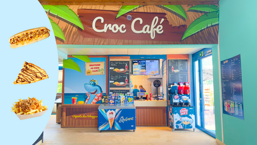 Ouvert selon l’affluence du parc, le Croc Café vous propose une carte de petite restauration : hot dog, crêpes sucrées, donuts, granita, glaces et diverses boissons.